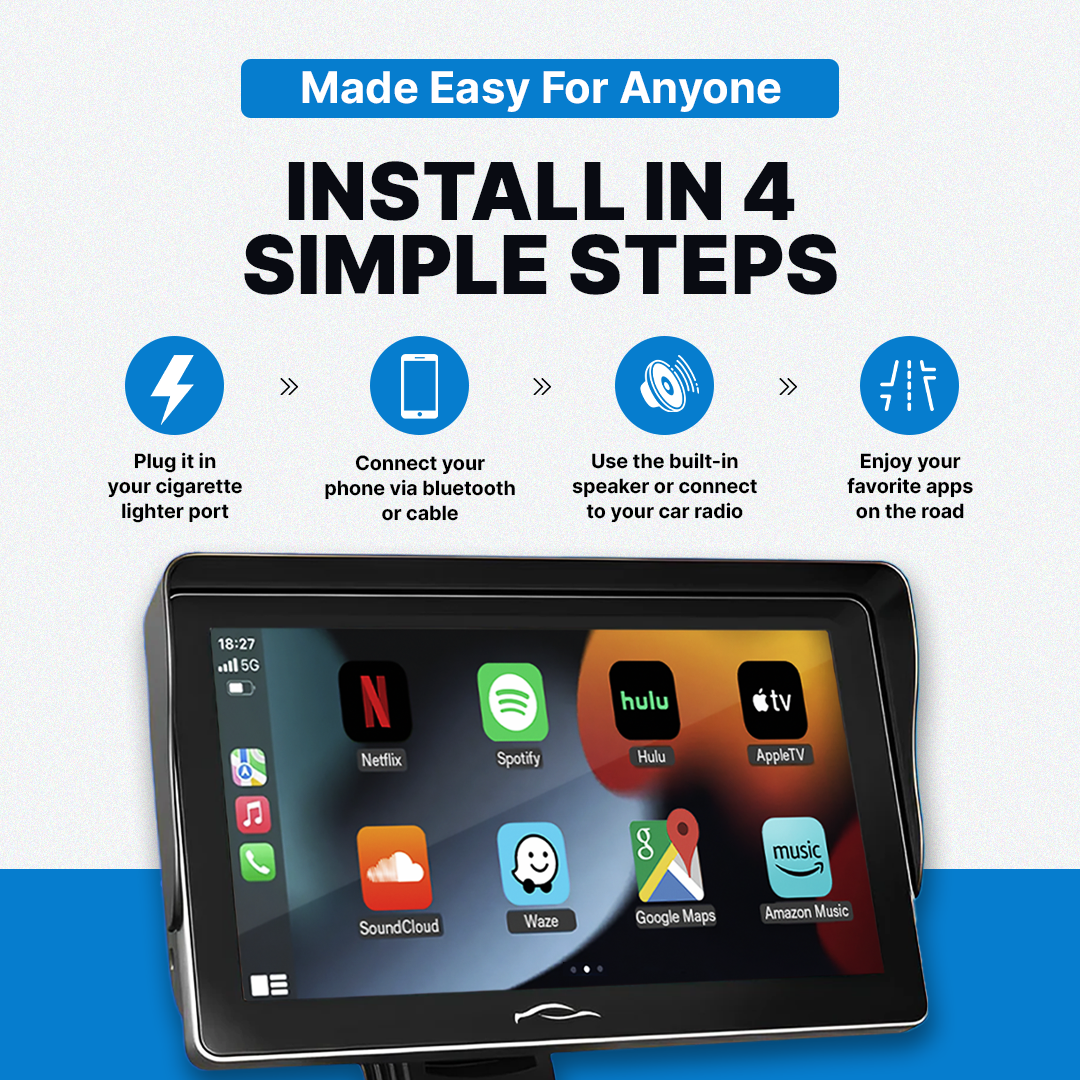 Le CarTablet est compatible avec toutes vos applications préférées, y compris les applications de navigation comme Google Maps ou Waze, les applications musicales comme Spotify ou Apple Music, ainsi que de nombreuses autres pour les podcasts, la messagerie et les appels.Il garantit une expérience fluide avec n’importe quelle application que vous choisissez d’utiliser.