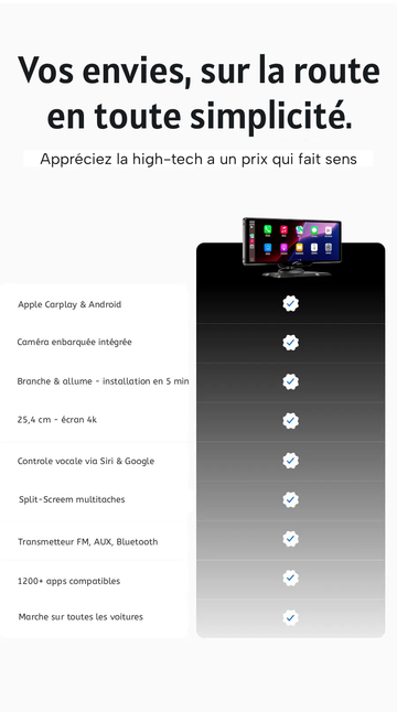 Absolument ! Le CarTablet est conçu pour offrir une compatibilité universelle. Il fonctionne avec tous les véhicules, tant que vous disposez d’un port d’allume-cigare pour l’alimentation.